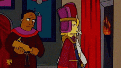 Контентын тайлбар: a cartoon of homer simpson standing next to a man holding a gun