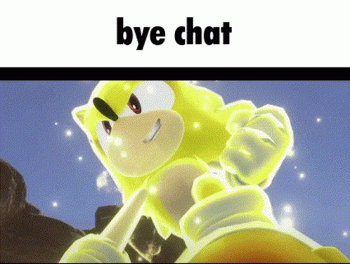 Контентын тайлбар: a cartoon of a yellow sonic the hedgehog with the words `` bye chat '' written on it .