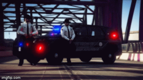 Контентын тайлбар: two police officers are standing in front of a car that says sheriff on the back