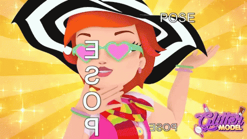 Контентын тайлбар: a cartoon of a woman wearing sunglasses and a hat with the word pose on the bottom