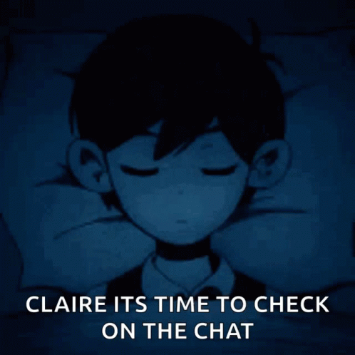 Контентын тайлбар: a picture of a boy with the words " claire its time to check on the chat " below him