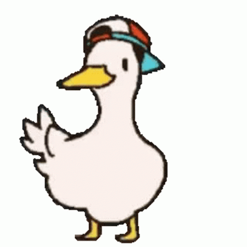a pixel art duck with a green head and yellow beak is walking on a white background .