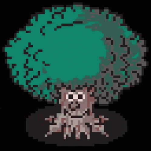 Descrierea conținutului: a pixel art drawing of a tree with a smiley face on it