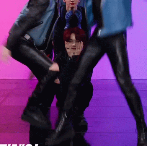 Descrierea conținutului: a group of young men are dancing in front of a pink background