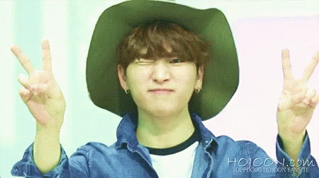 Descrierea conținutului: a man wearing a cowboy hat and a denim shirt is making a peace sign