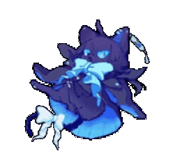 Descrierea conținutului: a pixel art drawing of a blue and black cat