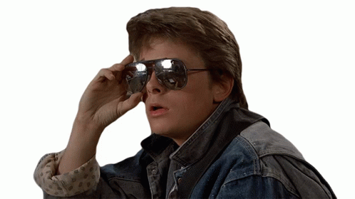 Descrierea conținutului: a man wearing a denim jacket and sunglasses looks surprised
