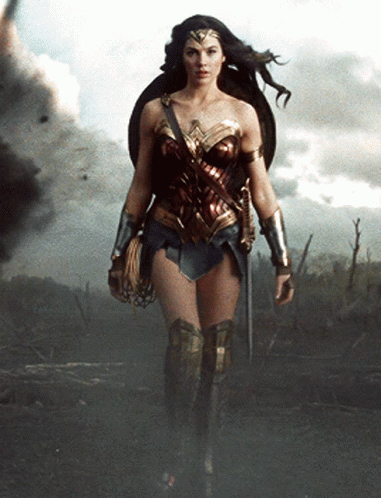 Descrierea conținutului: a woman in a wonder woman costume holding a sword and shield