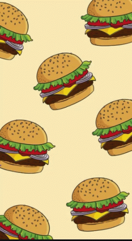 Descrierea conținutului: a pattern of hamburgers with lettuce tomatoes and onions