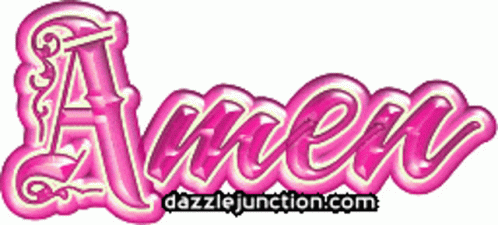 Descrierea conținutului: the word amen is written in pink with dazzlejunction.com at the bottom