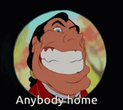 Descrierea conținutului: a cartoon character with a big smile and the words anybody home below it