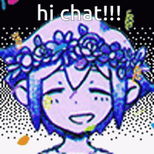 Descrierea conținutului: a pixel art of a girl with a flower crown on her head says hi chat !
