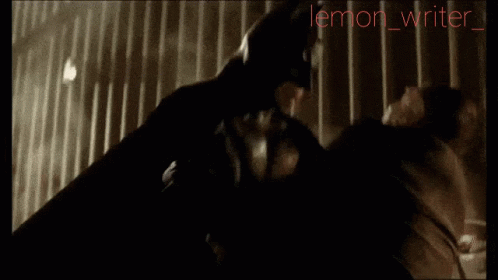 Descrierea conținutului: a man in a batman costume is fighting another man in a dark room