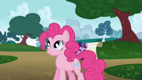 Descrierea conținutului: pinkie pie from my little pony stands on a dirt path