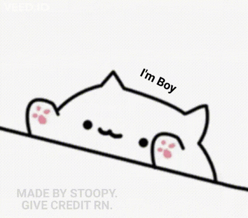 Descrierea conținutului: a drawing of a cat with the words " i 'm boy " written on it