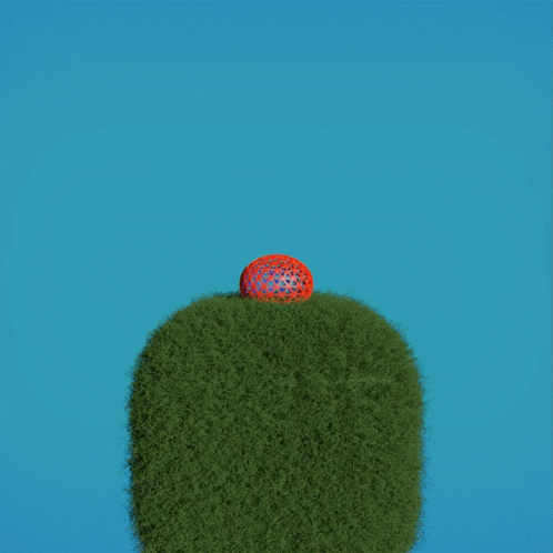 Descrierea conținutului: a red ball is flying in the air above a grassy hill