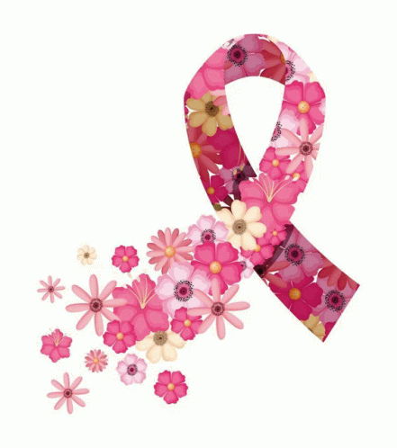Descrierea conținutului: a pink ribbon is surrounded by pink flowers