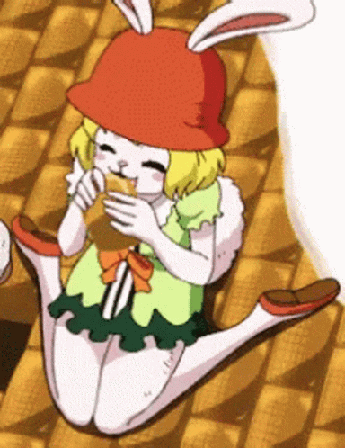 Descrierea conținutului: a girl with bunny ears is eating a sandwich