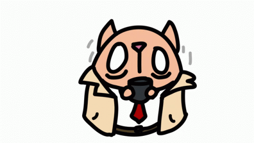 Descrierea conținutului: a cartoon drawing of a cat wearing a trench coat and tie