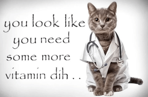 Descrierea conținutului: a cat dressed as a doctor with the words you look like you need some more vitamin dih behind it