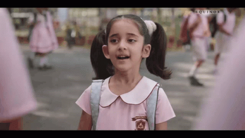 Descrierea conținutului: a little girl wearing a pink uniform with equinox on the bottom