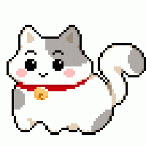 Descrierea conținutului: a pixel art of a cat wearing a red collar