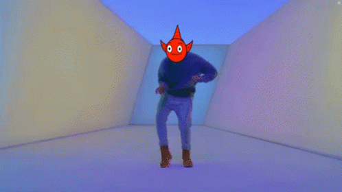 Descrierea conținutului: a cartoon drawing of a person with a devil face on their head