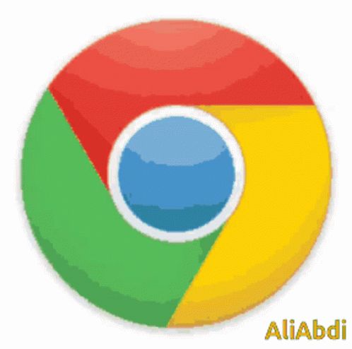 Descrierea conținutului: a pixelated google chrome logo with the name aliabdi underneath it