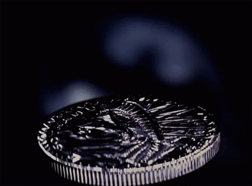 Descrierea conținutului: a silver coin with an eagle on it is spinning on a table