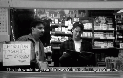 Descrierea conținutului: two men standing in front of a store with a sign that says if you plan to shoplift let us know