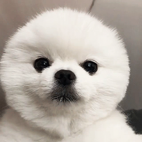 Descrierea conținutului: a close up of a white dog 's face with black eyes