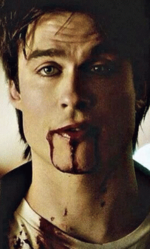 Descrierea conținutului: a close up of a man 's face with blood coming out of his mouth