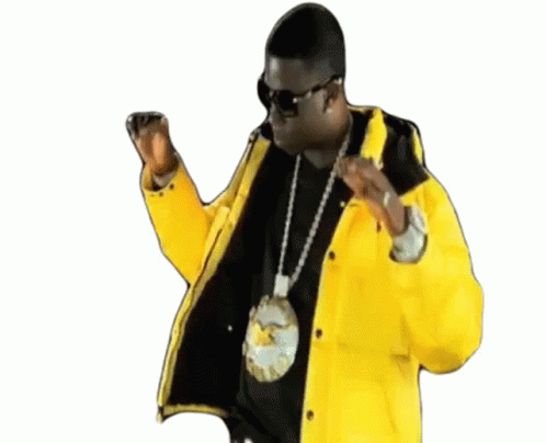 Descrierea conținutului: a man in a yellow jacket and sunglasses is dancing