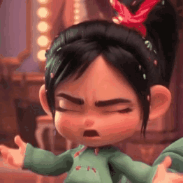 - Descrierea conținutului: vanellope from winnie the pooh is making a funny face with her eyes closed and her hands outstretched .