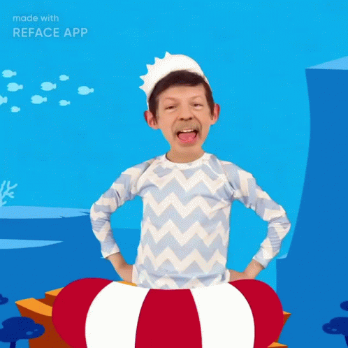 - Descrierea conținutului: a man wearing a striped shirt and a crown is standing in a red and white float with his hands on his hips