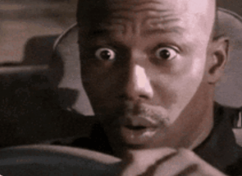 Descrierea conținutului: a bald man with a surprised look on his face is driving a car