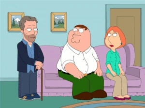 Descrierea conținutului: a cartoon of a man with a cane sitting on a couch next to a woman sitting on a couch