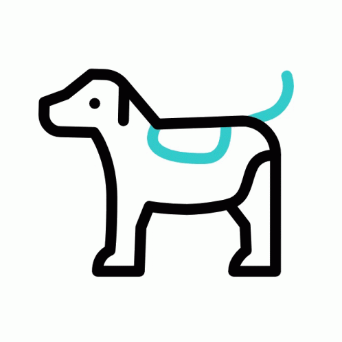 Descrierea conținutului: a line drawing of a dog with a turquoise tail
