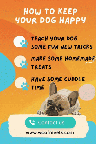 Descrierea conținutului: an advertisement for how to keep your dog happy with a picture of a dog