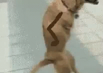 Descrierea conținutului: a dog is standing on its hind legs with a drawing of a hand on its back .