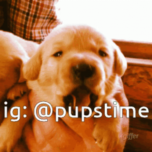 Descrierea conținutului: a puppy is being held in someone 's arms with a caption that says ig @pupstime