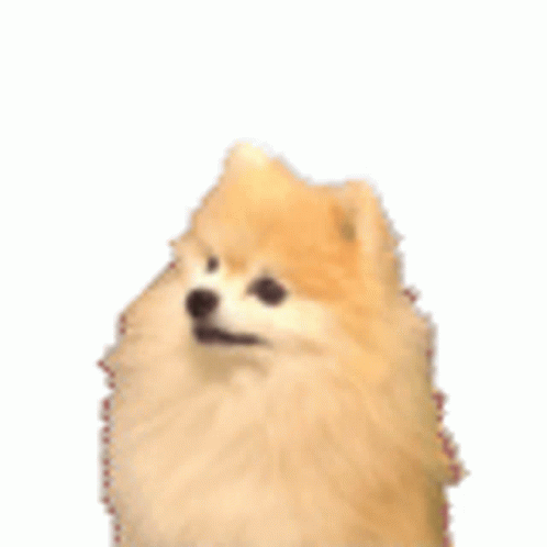 Descrierea conținutului: a pomeranian dog is standing in front of a white background and looking at the camera .