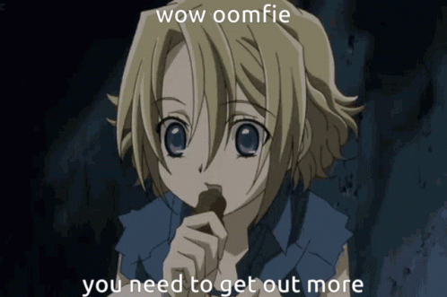 Descrierea conținutului: a picture of a girl with the words wow oomfie you need to get out more below her