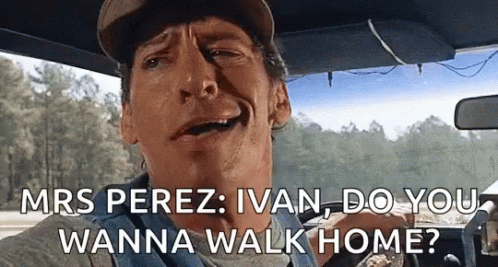Descrierea conținutului: a man is driving a car and talking to mrs perez , ivan , do you wanna walk home ?