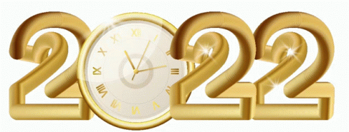 Descrierea conținutului: gold numbers 2022 with a gold clock in the middle