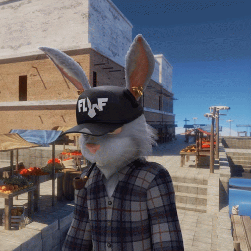 Descrierea conținutului: a rabbit wearing a plaid shirt and a hat that says flaf