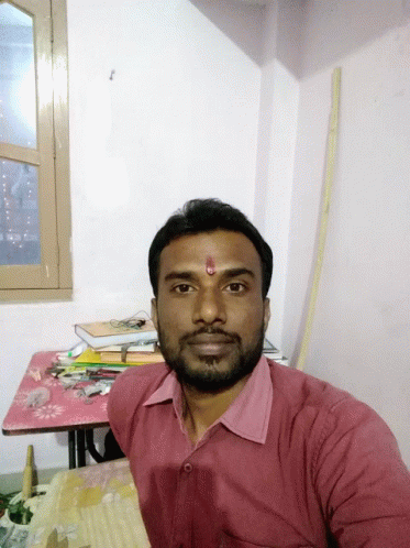 Descrierea conținutului: a man with a red dot on his forehead is taking a selfie