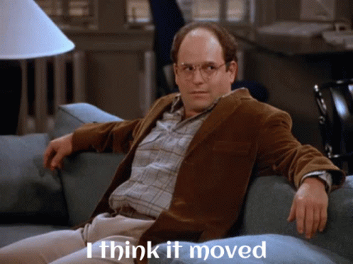 Descrierea conținutului: a man sitting on a couch with the words " i think it moved " written below him