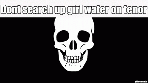 Descrierea conținutului: a black and white image of a skull with the words " dont search up girl water on tenor " below it
