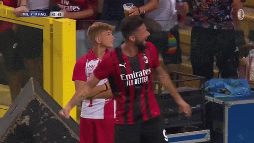 Descrierea conținutului: a soccer player wearing an emirates fly better shirt celebrates